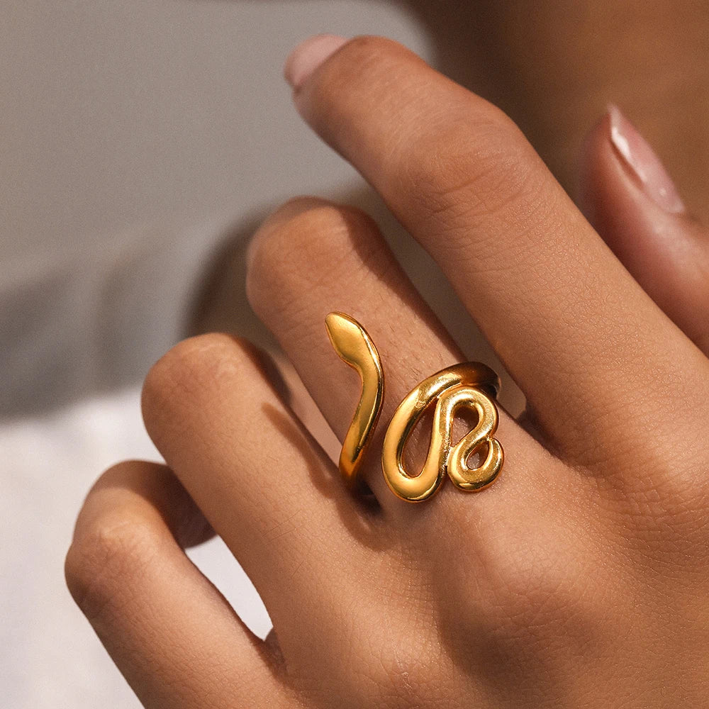 Introducing our exquisite Serpentine Gold Ring, a captivating blend of elegance and mystique. Crafted in the shape of a sinuous snake, this luxurious ring wraps gracefully around your finger, embodying both power and grace. Made from high-quality gold, its smooth, polished finish radiates sophistication, making it a timeless addition to any jewelry collection. Whether worn as a statement piece or paired with other accessories, the Serpentine Gold Ring is perfect for those who appreciate unique, artful designs. Elevate your style with this striking symbol of transformation and allure, ideal for any occasion.